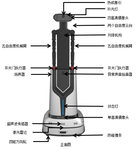 机房智能巡检机器人是一款用于机房的智能巡检机器人,以激光导航+惯性导航+视觉导航的组合导航方式,自动适应环境、自动避障,无需机房改造;搭配人工智能+大数据分析,故障定位及风险预警;使用国内首创的双机械臂,具备开关机柜门的拟人化操作能力,代替运维人员进行机房巡检、运维,大大降低运维成本。